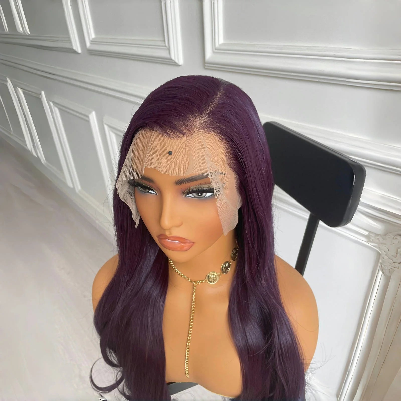 13X4 Dark Purple Wig Synthetic Hair Natural Wavy Lace Front Wig Body Wave Long Hair Colored Lace Frontal Wigs for Women Party