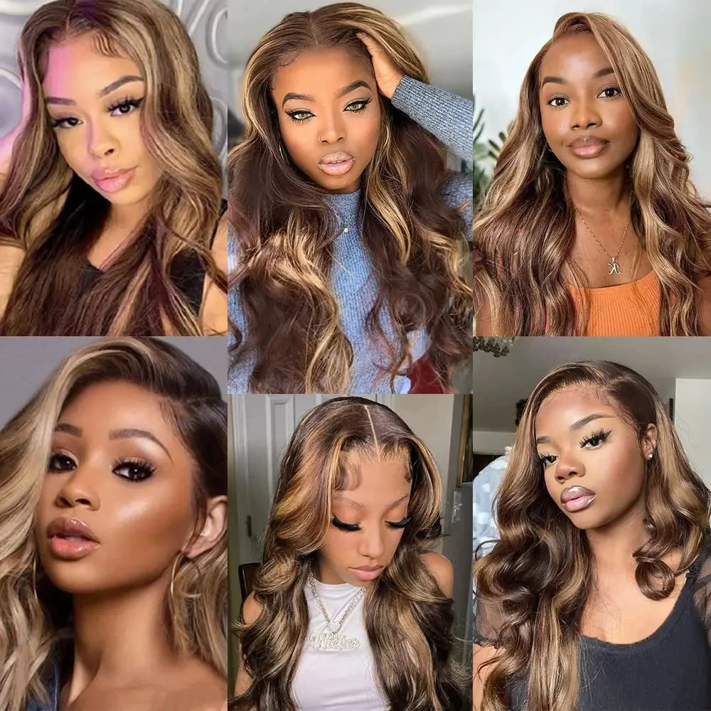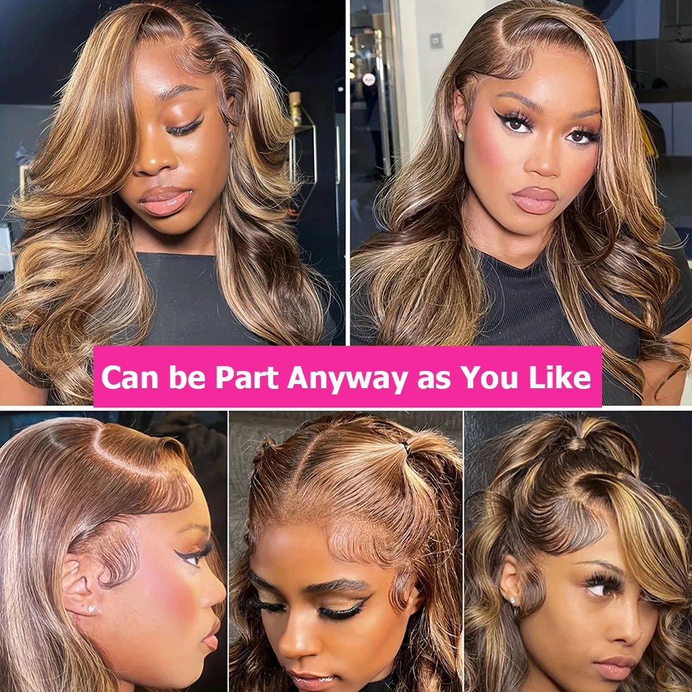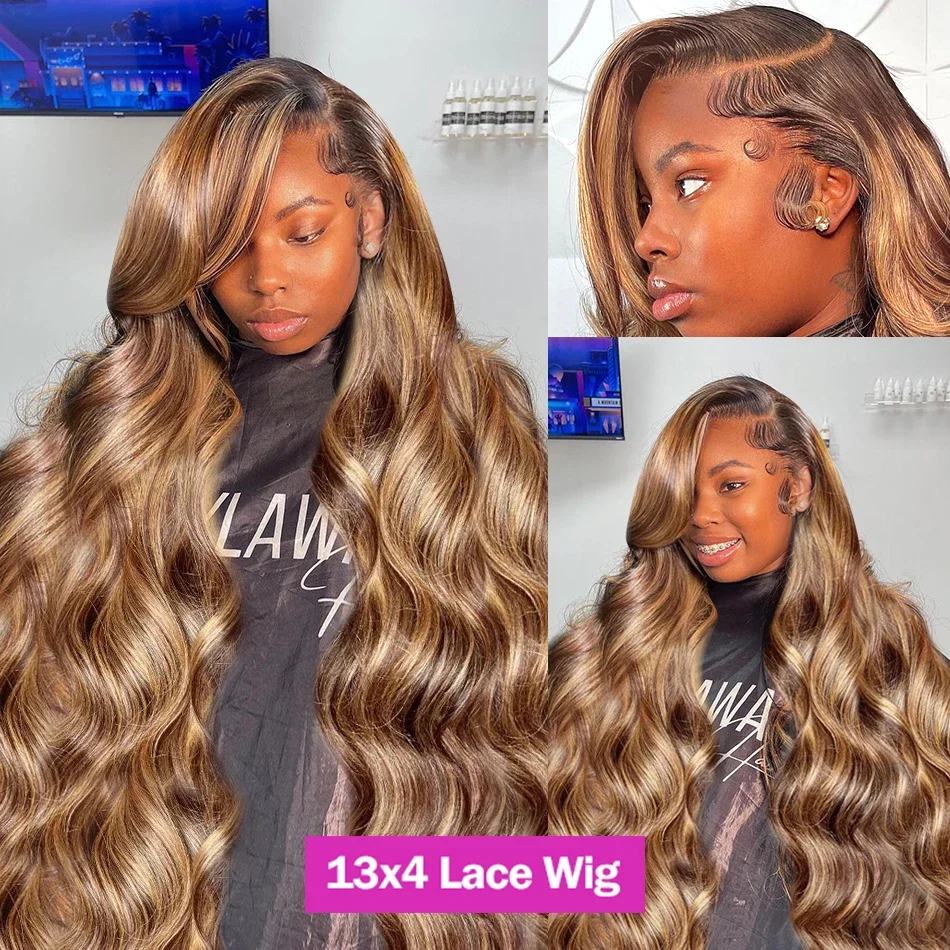 13x4 HD Lace Front Wig P4/27 Highlight Colored Body Wave Human Hair 13x6 Transparent Lace Frontal Wigs