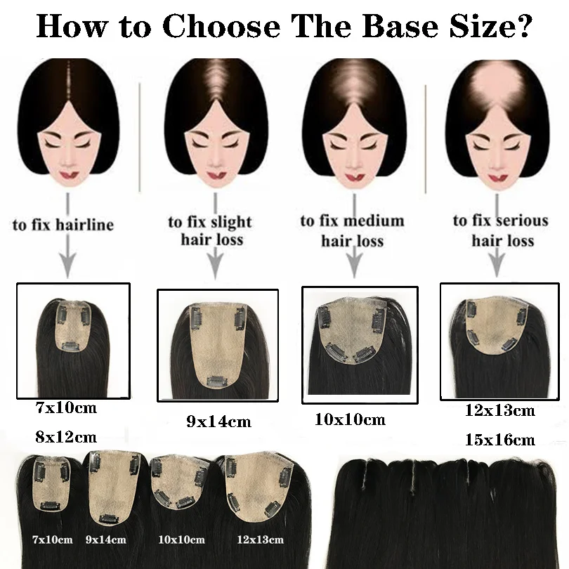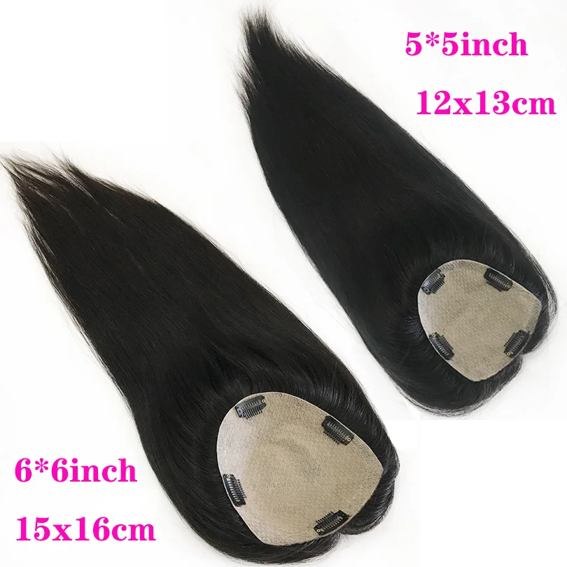 15x16cm Toupee Hair For Women Topper Human Hair Clips In Silk base Natural Color 130% Virgin Hair Extension