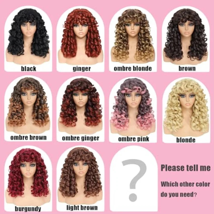 20 Inch Long Big Curly Afro Wig with Bangs Ombre Brown Synthetic Hair Replacement Wig Perfect for Cos