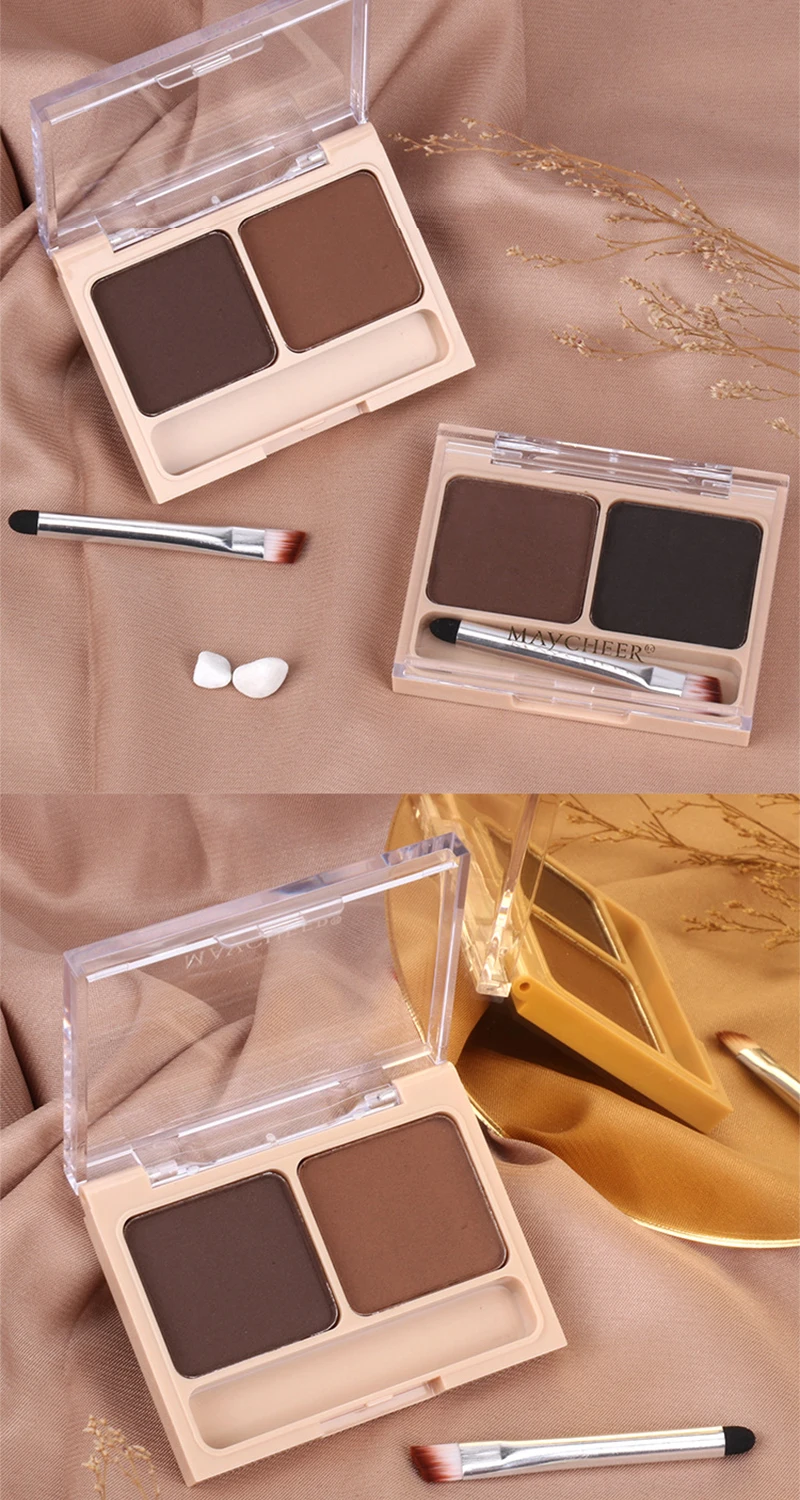 2Color Eyeshadow Powder Makeup Black Brown Coffee Waterproof Eyebrow Powder Eye Shadow Eye Brow Palette with Brush Eyebrow Cream