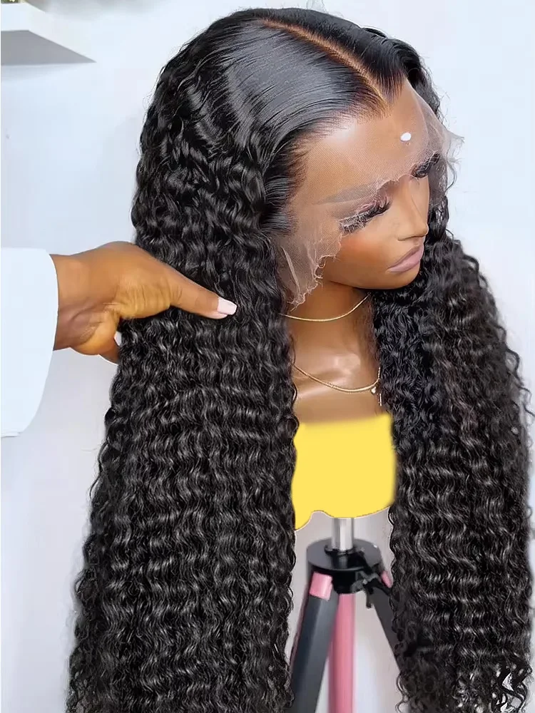 HD Transparent 13x6 Lace Frontal Wigs Brazilian Remy Human Hair Wig Curly Deep Wave Lace Front Preplucked Water Wave