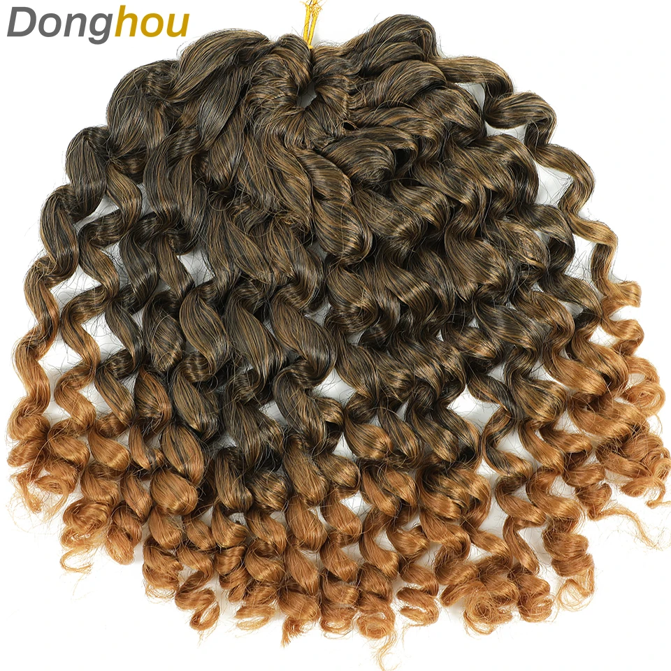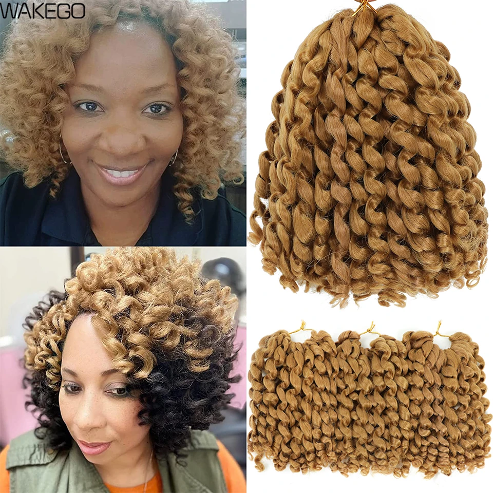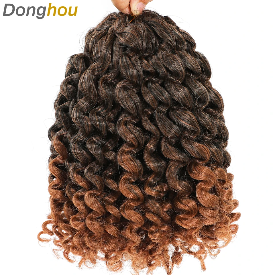 8 Inches Jamaican Bounce Crochet Hair Jumpy Wand Curl Crochet Braids Hair Ombre Brown Synthetic Curly Braiding Hair For Women