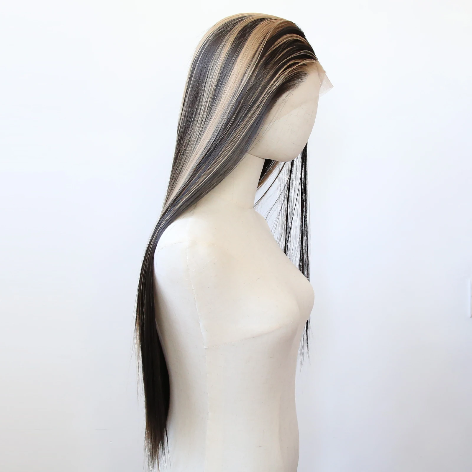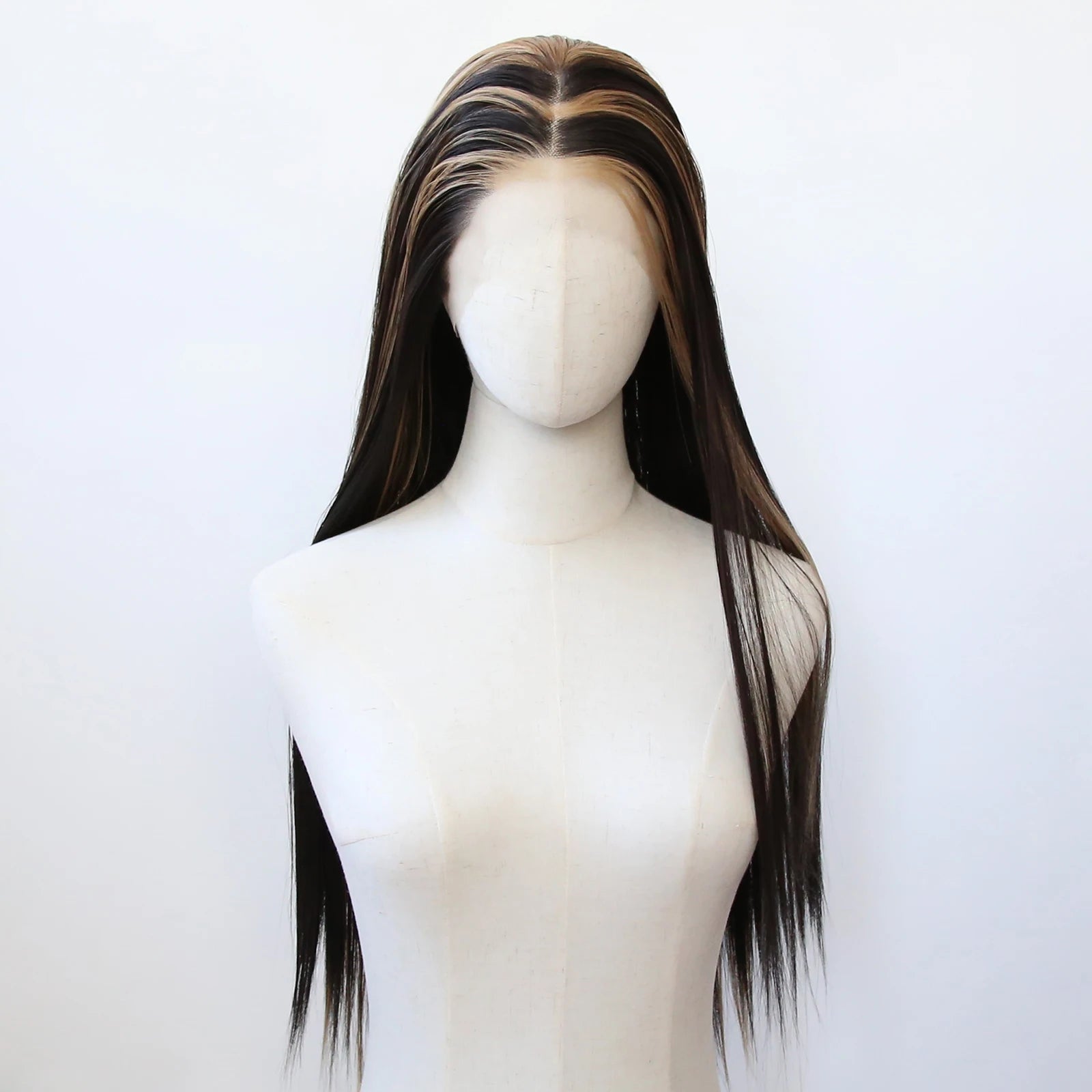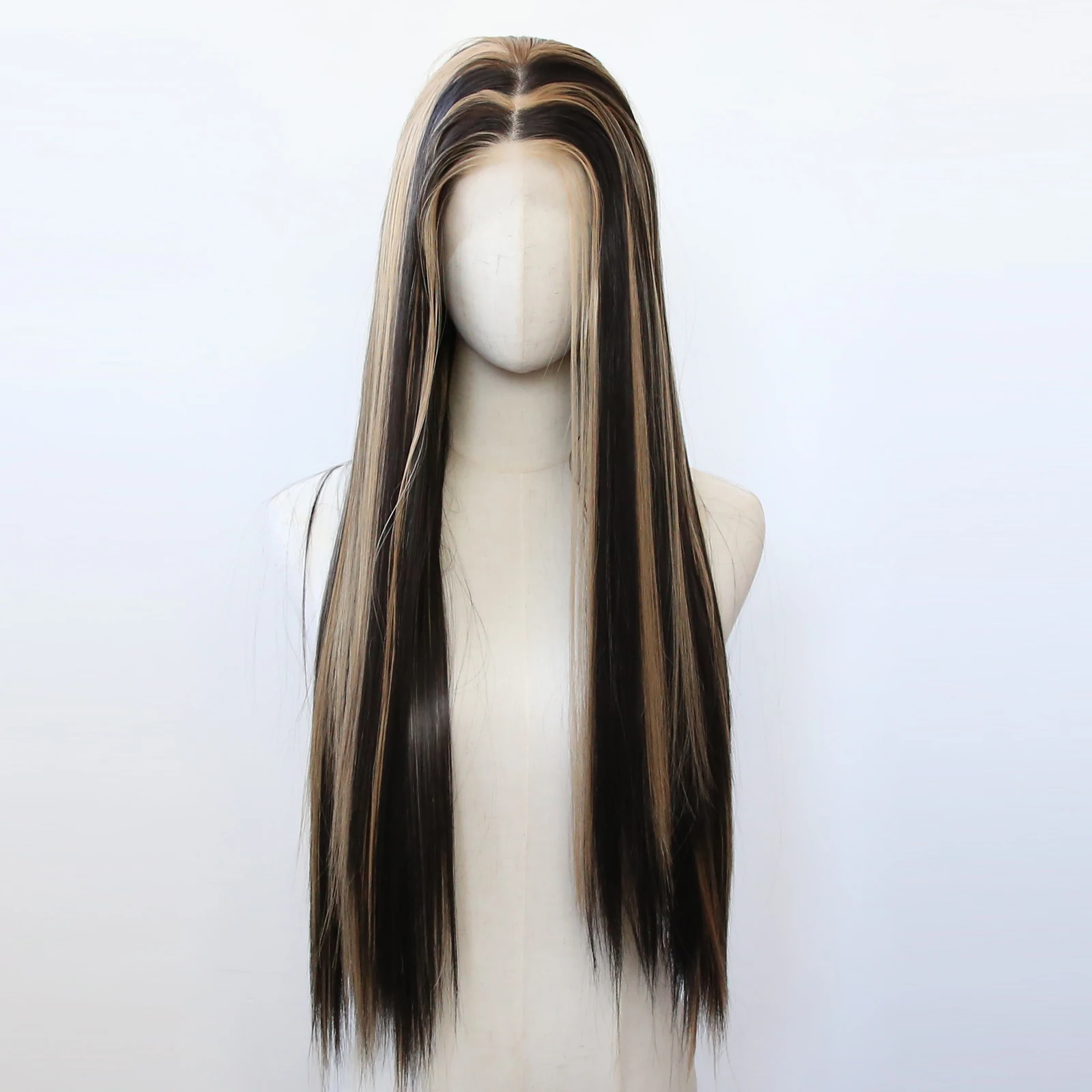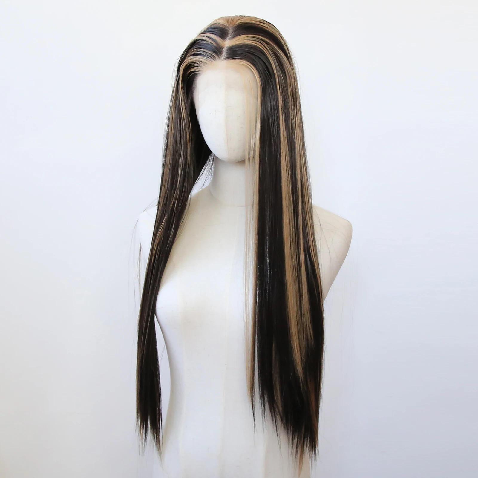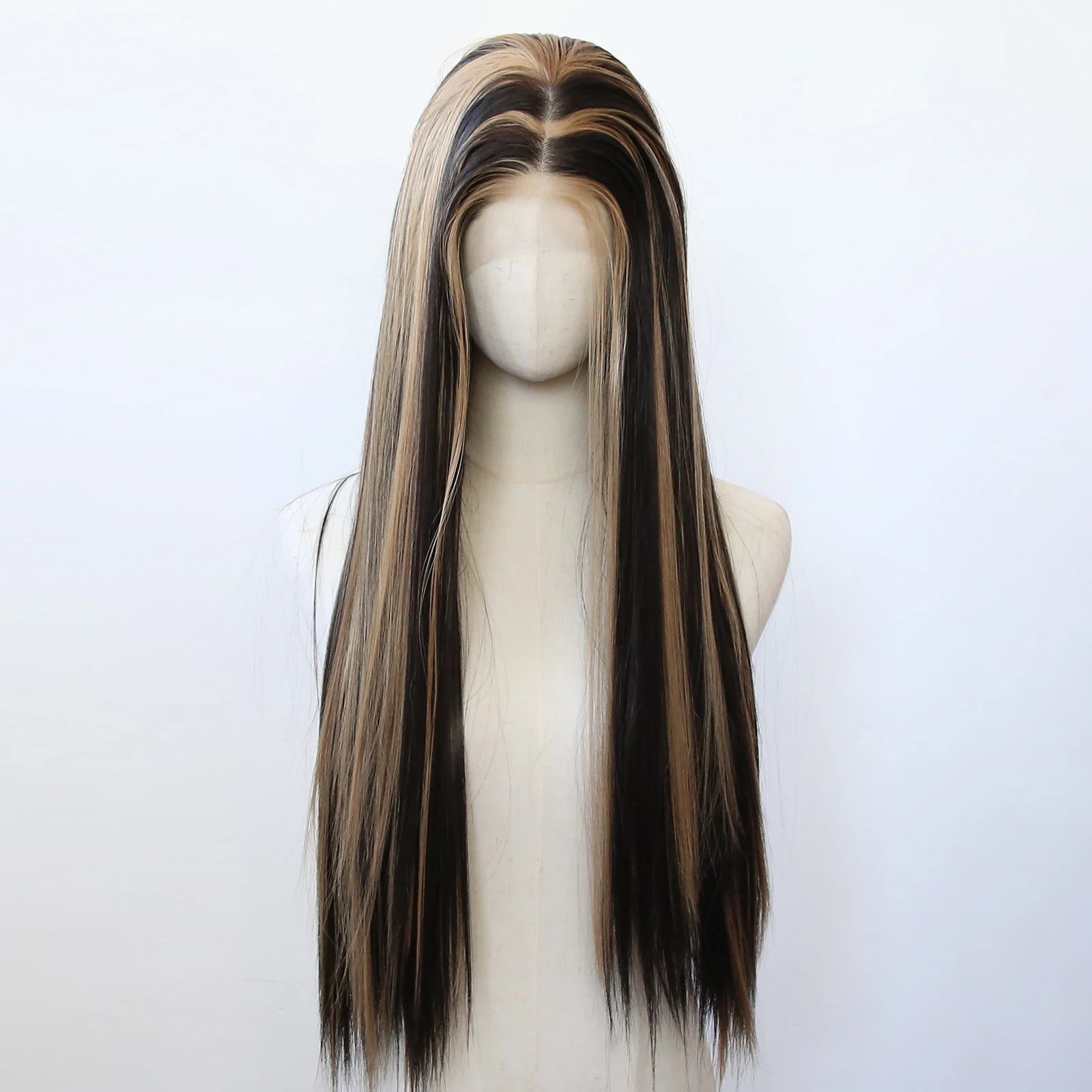 Balayage Wig Black Highlight #27 Middle Part Synthetic Lace Front Wigs for Black Women Pre Plucked Heat Resistant Fiber Hair
