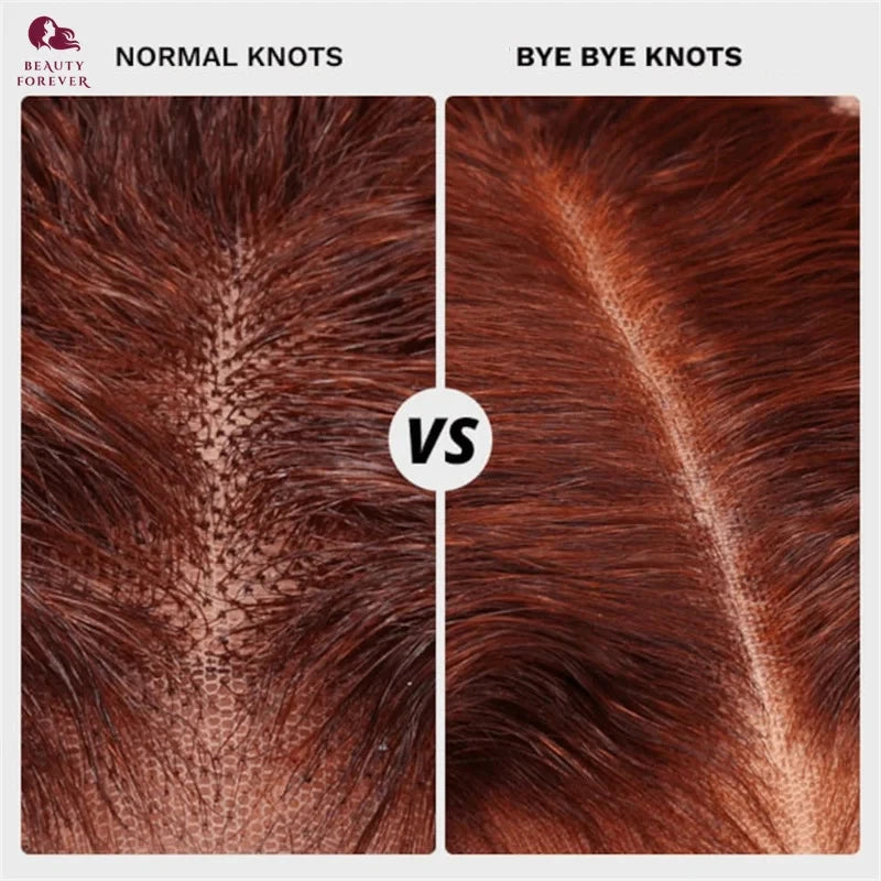 Beautyforever Bye Bye KNOTS Kinky Curly Glueless Preplucked Human Wigs Ready to Wear Lace Front Wig Auburn Brown Colored Human Hair Wig Density 180%