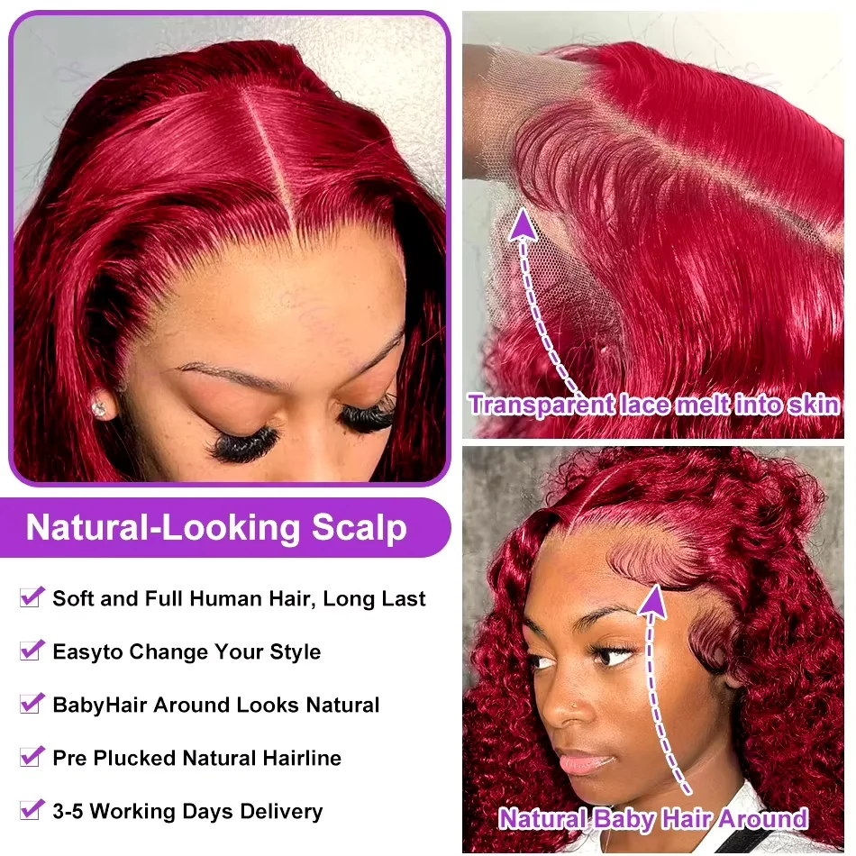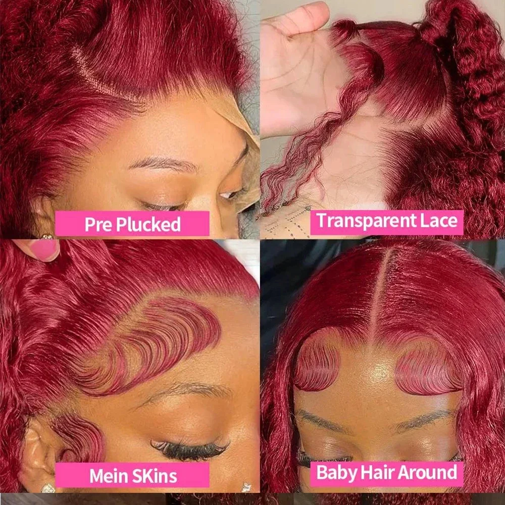 Brazilian 13x6 Hd Lace Frontal Wigs Deep Wave Burgundy Human Hair 99j Colored Red Wig For Women Brazilian Water Wave Curly Wigs