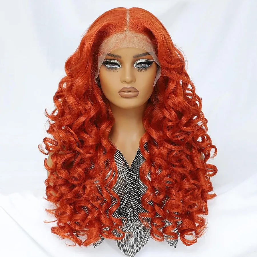 Felek Synthetic Ginger Curly Wig 13x6 Lace Front Wigs for Black and White Women Loose Wave HD Transparent Lace Frontal Wigs Pre
