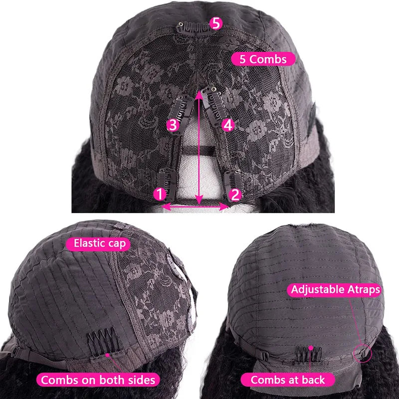 Kinky Straight U V Part Wig Human Hair No Leave Out U Part Brazilian Yaki Straight Machine Made Human Hair Wigs For Women Virgin