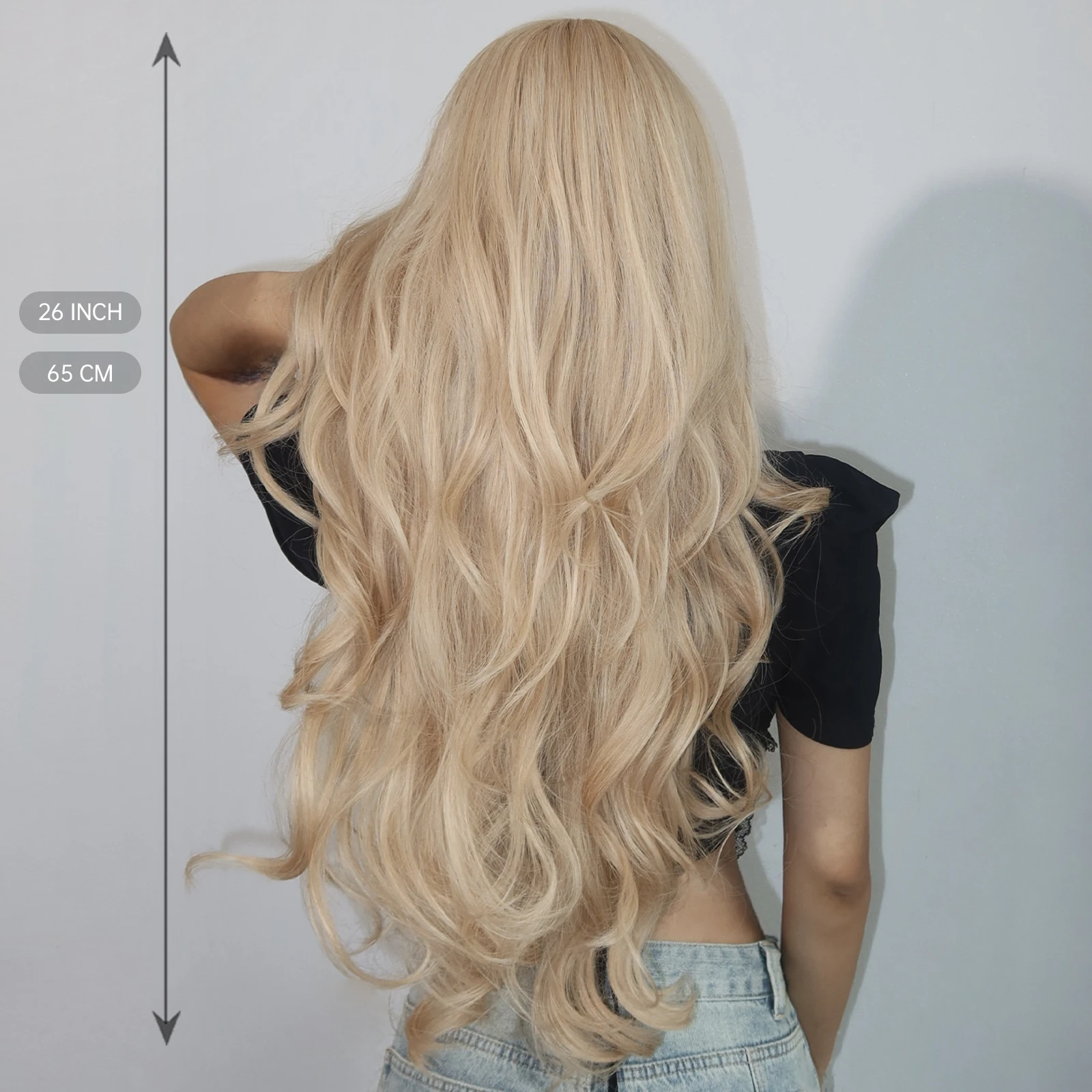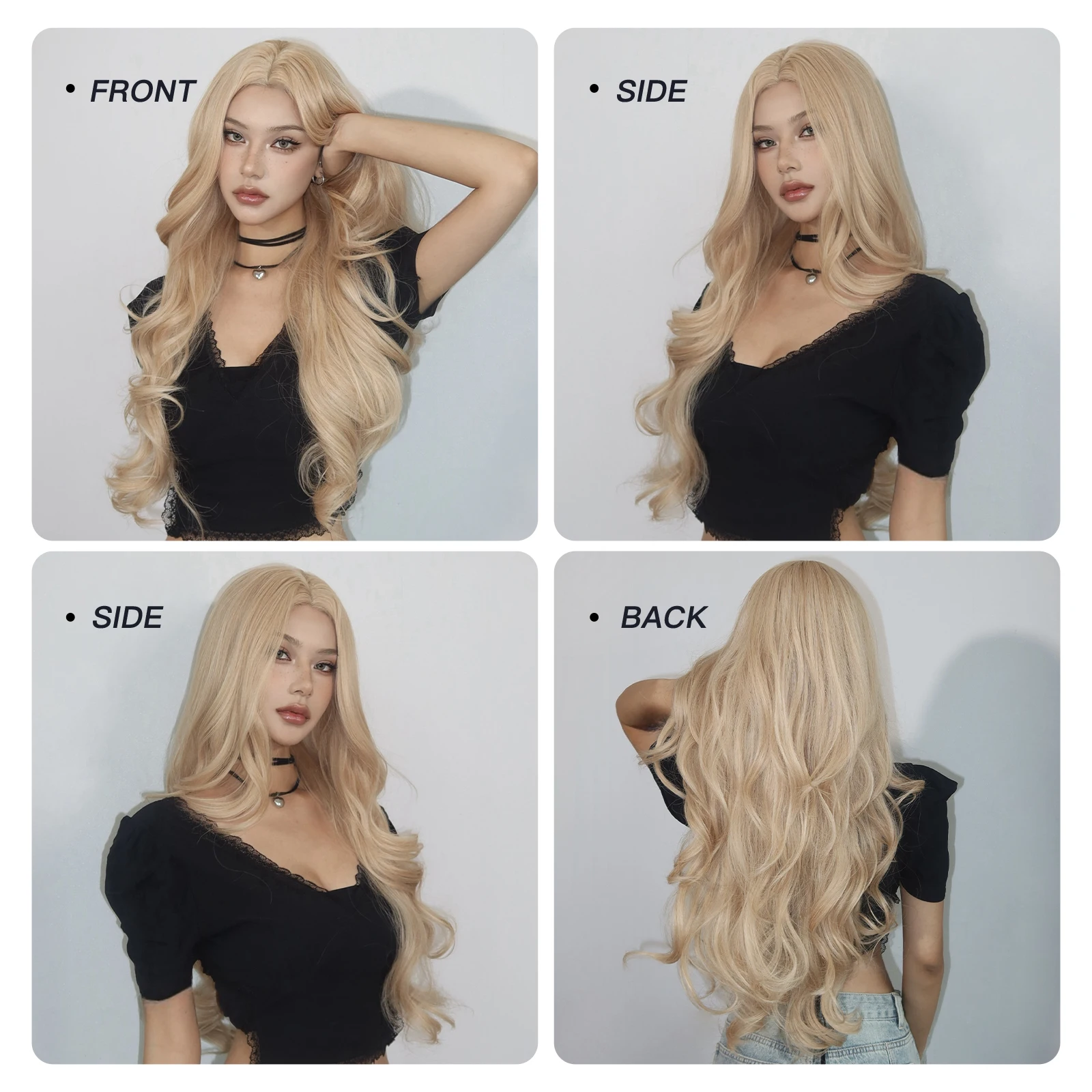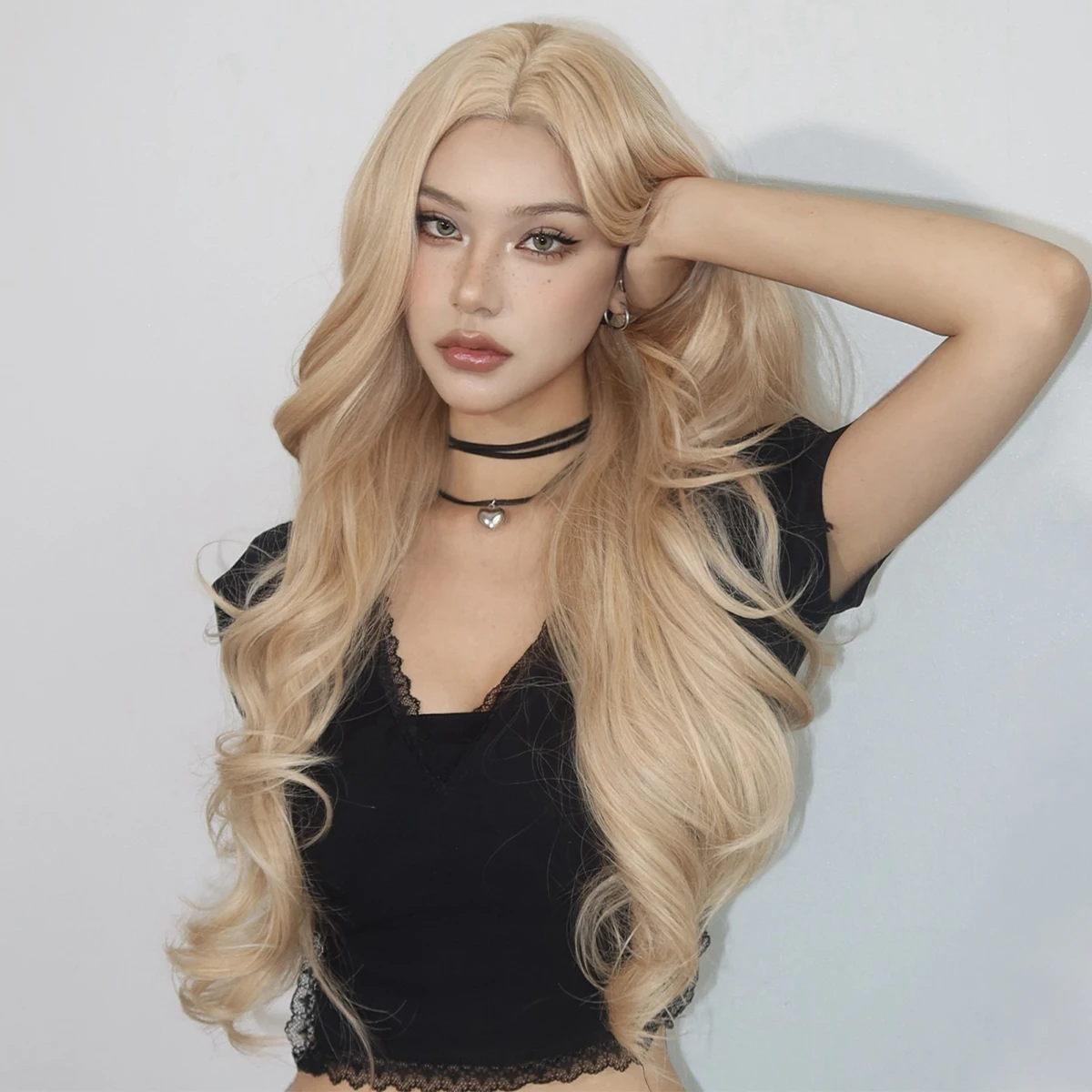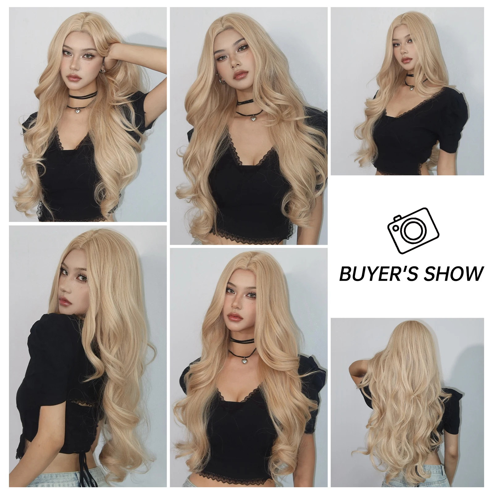 Long Body Wave Wigs Transparent Lace Frontal Synthetic Wig Middle Part Hair Light Golden Wig for White Women Dairly Party