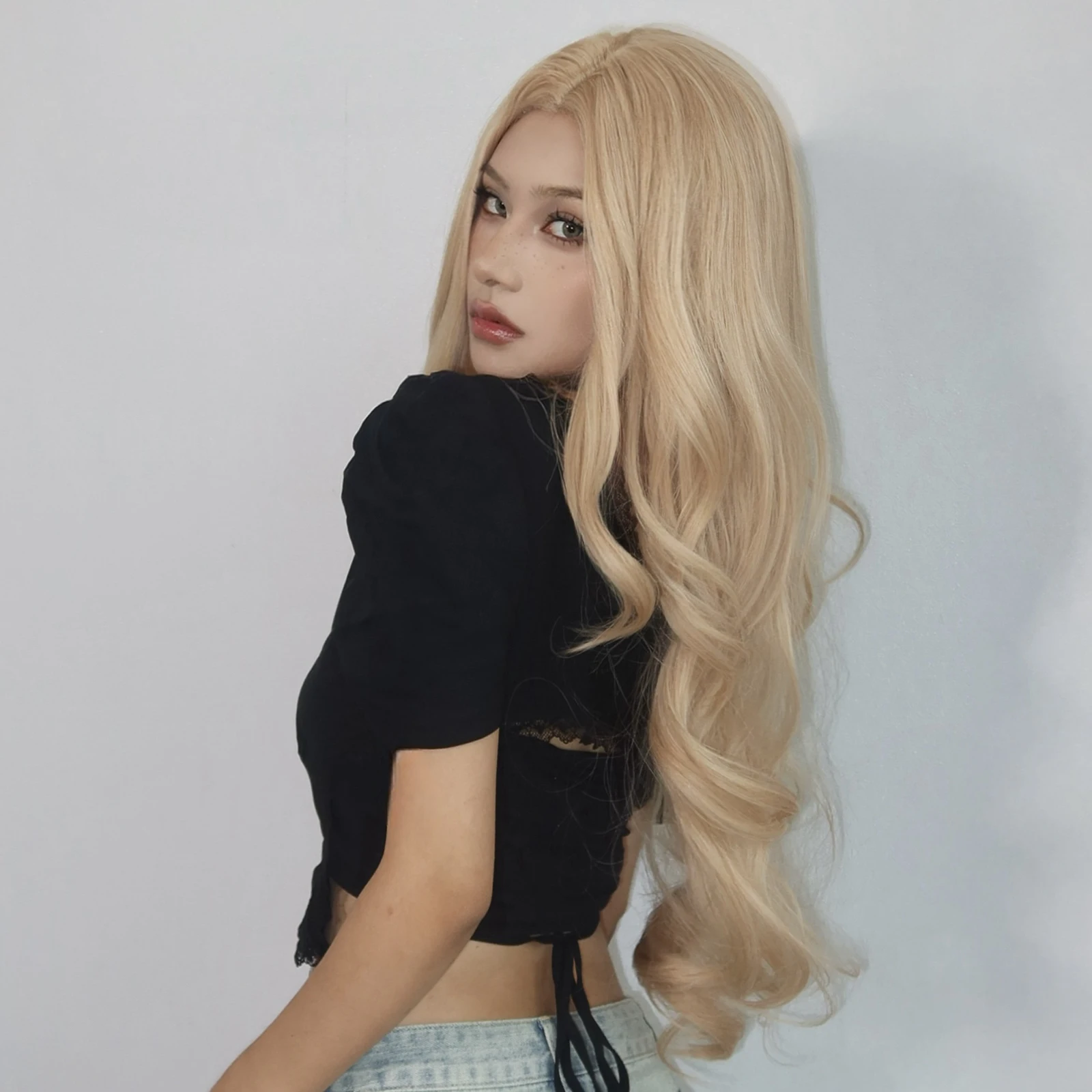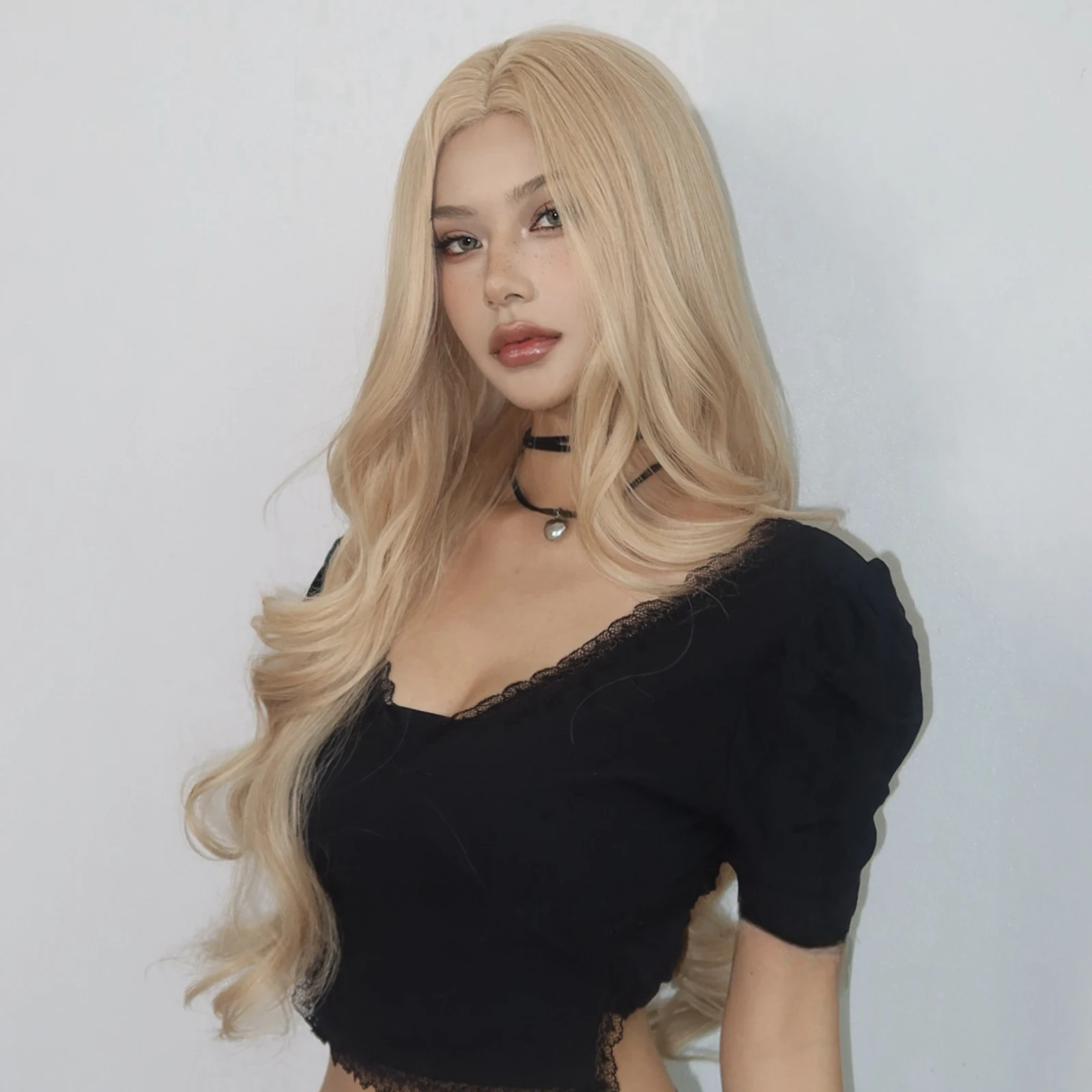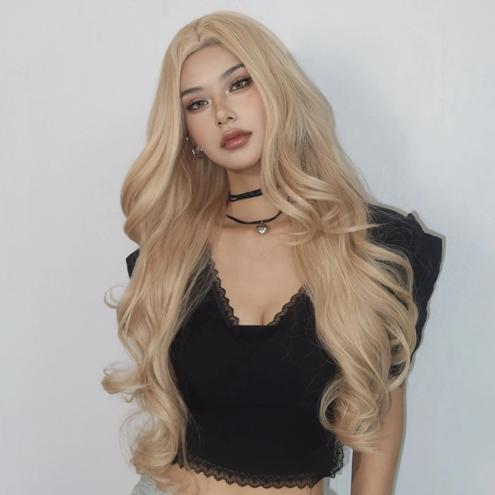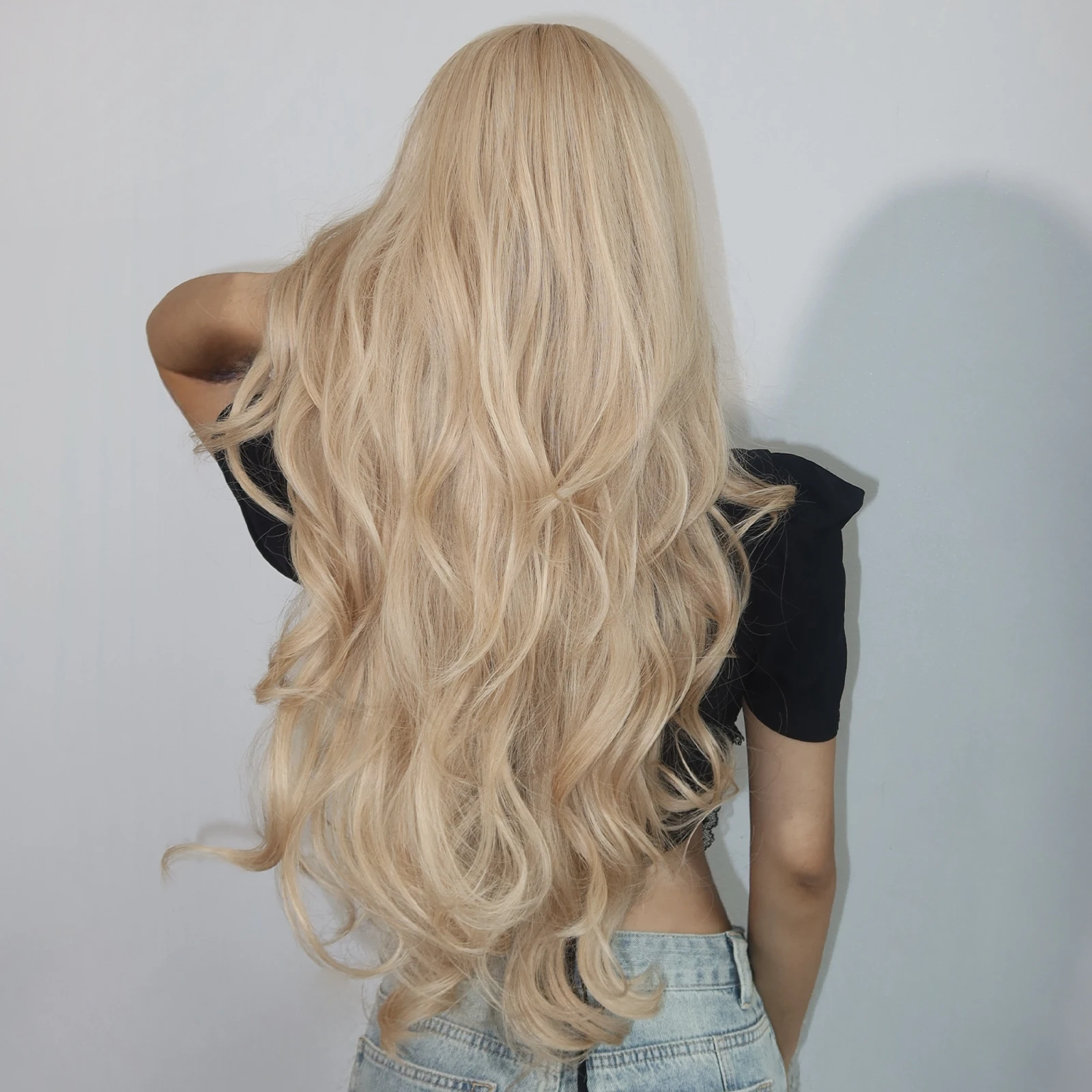 Long Body Wave Wigs Transparent Lace Frontal Synthetic Wig Middle Part Hair Light Golden Wig for White Women Dairly Party