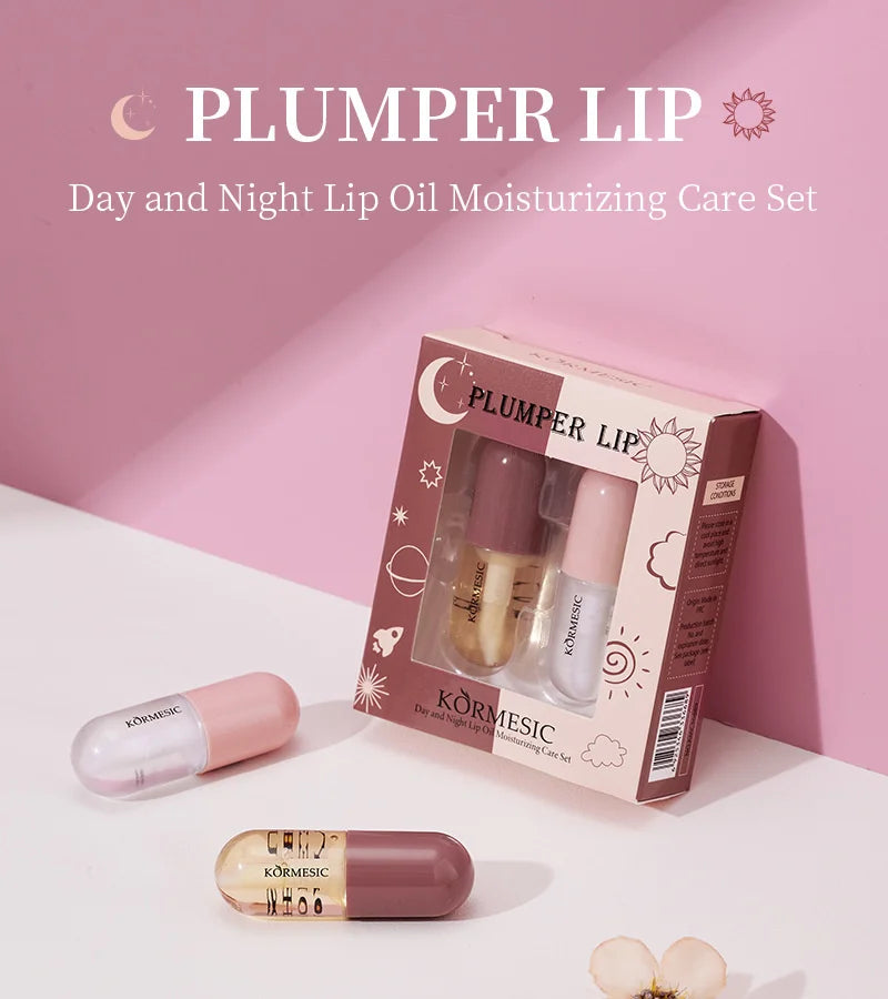 Long Lasting Lip Plumper Oil Serum Day Night Repair Moisturizing Lip Oil Set Plumping Lip Gloss Makeup Sexy Lip Glow Oil Care