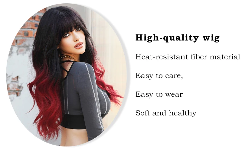【Name】NAMM Long Wavy Ombre Black To Red Wig for Women Daily Cosplay Party Synthetic Lavender Hair Wig with Fluffy Bangs Heat Resistant