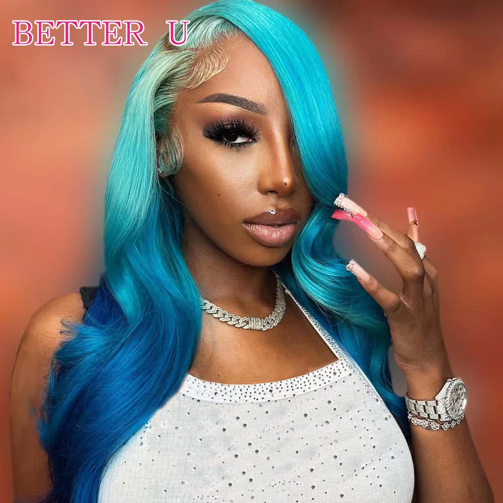 Ombre Blue Human Hair Wig Body Wave 13x4 13x6 Transparent Lace Front Wigs For Women Pre Plucked Colored Brazilian Remy Hair