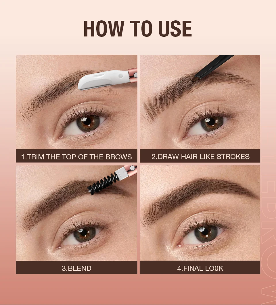3-in-1 Applicator: The eyebrow pencil combine eyebrow trimmer and brush. The triangular tip allows for precise application while the spoolie on the other end lets you blend brows seamlessly and brush the hairs into the desired shape during styling.