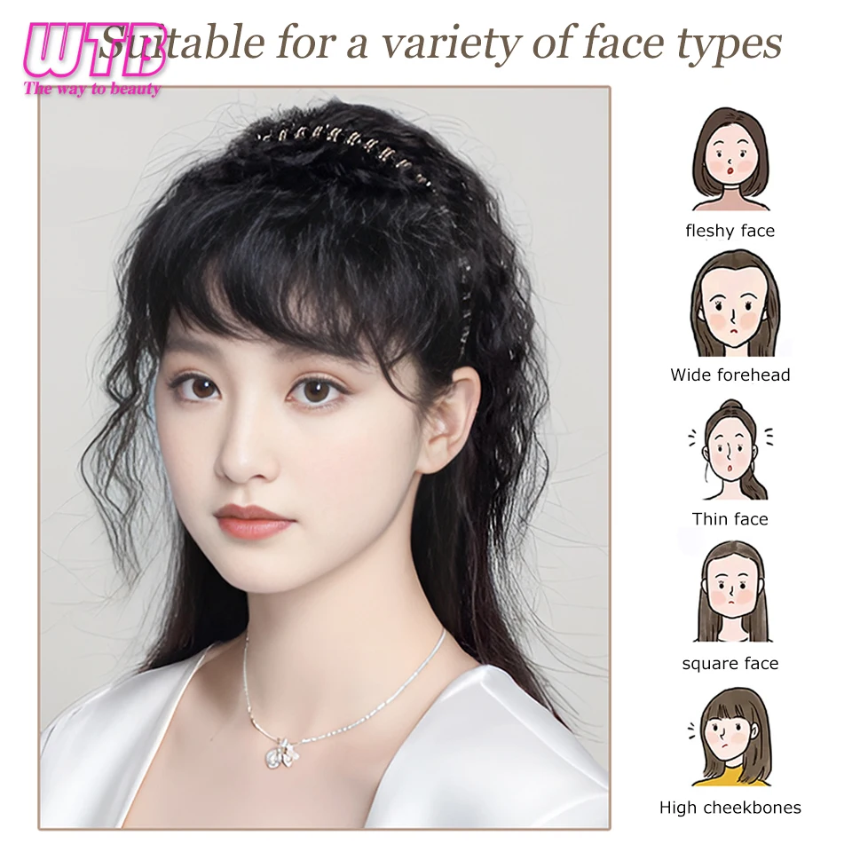 WTB Hairband wig bangs wig female one natural curly hair covered white hair on the top of the head thin bangs wig piece